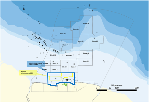 Staatsolie Maatschappij Suriname N.V. (Staatsolie) plans to conduct a seismic survey in the Shallow Offshore area. This area, covering approximately 2,000 km², is located off the coast of Saramacca and Coronie at a water depth of 20 to 50 meters. The purpose of this survey is to collect data for the assessment of potential oil and gas reserves. The survey is scheduled to start in mid-October and will continue until mid-December 2025.
