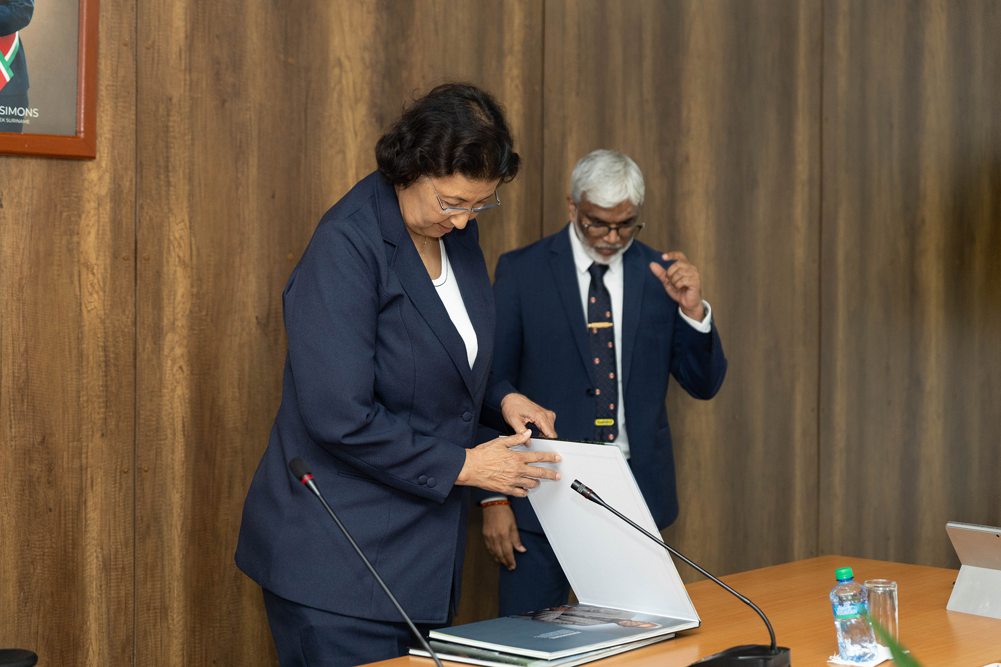 De president van Suriname, Jennifer Geerlings-Simons, heeft vandaag de GeoAtlas aan Eddie Jharap overhandigd.