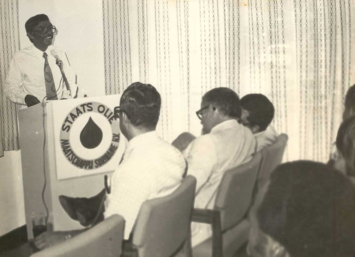 De commerciële olieproductie start op 25 november 1982 in het Tambaredjoveld in Saramacca. De productie is 200 barrels per dag.
