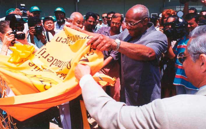 President Ronald Venetiaan geeft in februari het startsein voor de bouw van de raffinaderij.